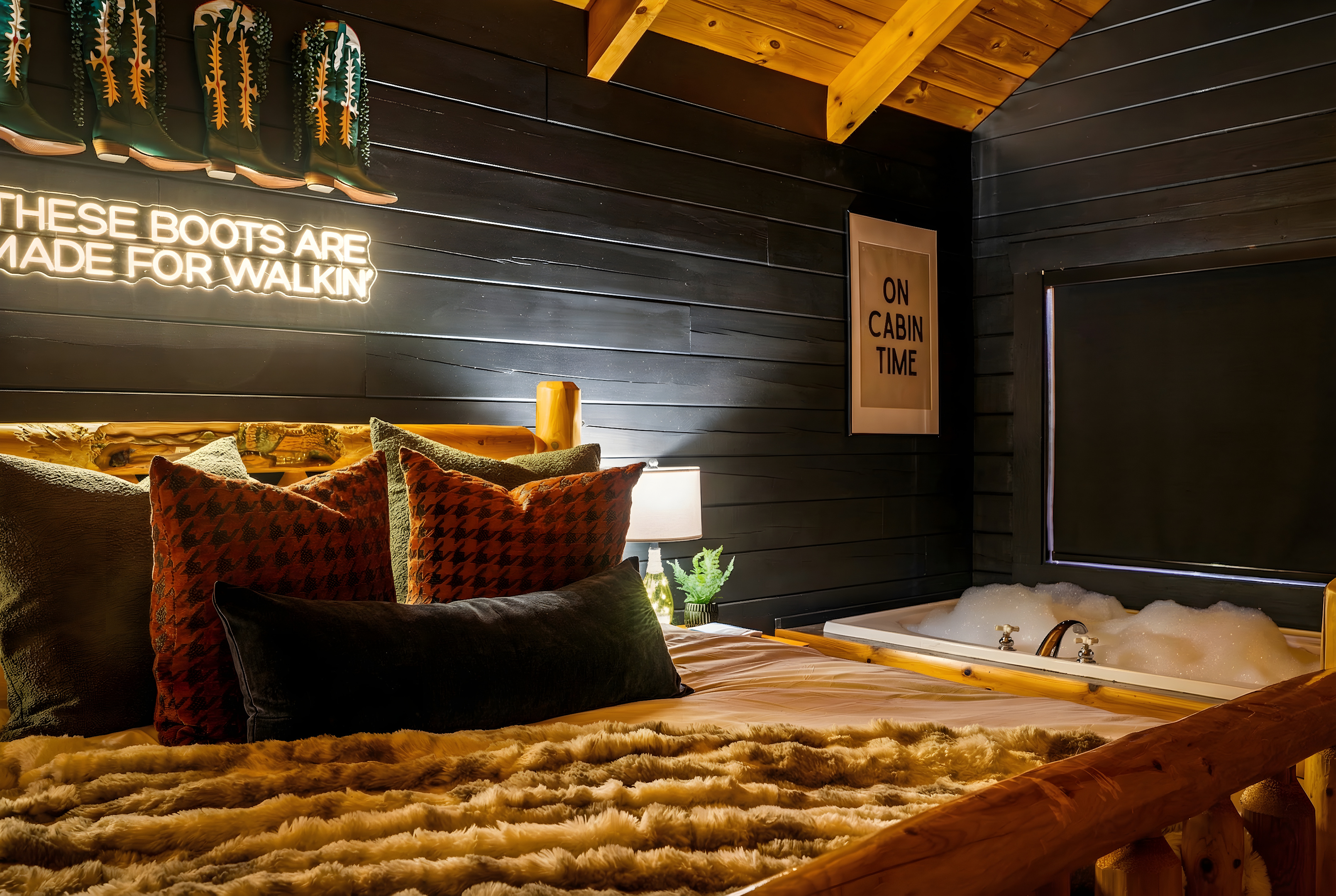 When the night winds down, the comfort stays high. Two king suites give you that “vacation sleep” feeling, and the jetted Jacuzzi tubs make it easy to end the day like you’re in a private spa. Whether you’re here for a couples escape, a birthday trip, a bachelor/bachelorette weekend, a friends getaway, or a family trip where the kids want fun and the adults want relaxation, Bear Affair is built to deliver the same thing: a stay that feels easy, elevated, and genuinely memorable.