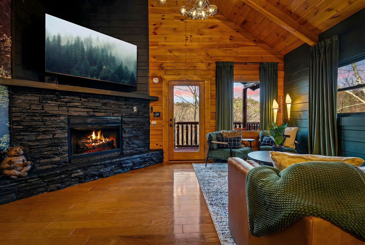 2 Bedrooms • 2 Bathrooms 2 Baths • Sleeps 1-8An elevated cabin escape that adults love—and kids can’t get enough of. Welcome to SmokySTR's A Bear Affair Retreat, a Smoky Mountain retreat made for the kind of trip that feels equal parts fun and exhale. You’re nestled in the woods when you want quiet, yet only about 20 minutes to downtown Pigeon Forge and Gatlinburg when you’re craving attractions, shows, and that mountain-town energy.