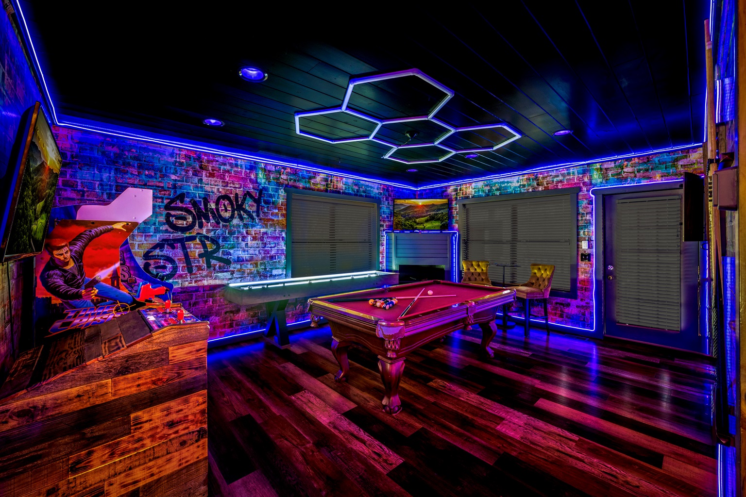 Step inside this stunning mountain retreat and instantly feel at home with vaulted ceilings, cozy fireplaces (display only), and plush seating. Each spacious bedroom has a private en-suite bathroom, while the game room offers hours of fun with arcade games and a pool table. Outside, take in incredible Smoky Mountain views from the hot tub or while sitting in the comfort of your own porch while facing Mount LaConte.